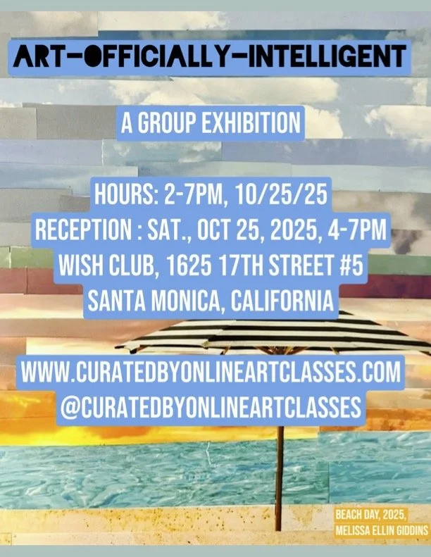 ART-OFFICIALLY-INTELLIGENT is a group exhibition of 10 artists curated by Nicole Cohen, Artist + Educator + Founder of Curated by Online Art Classes, established in 2025.